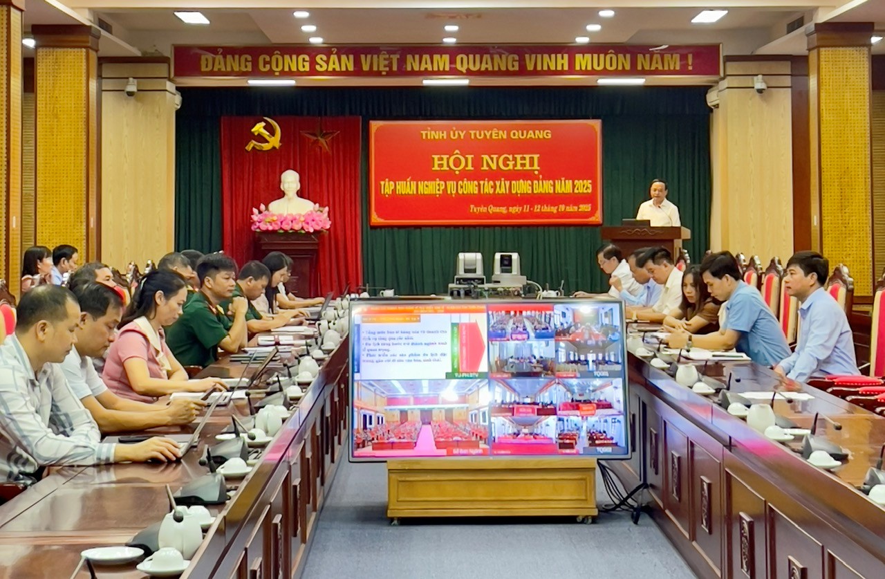 Hội nghị tập huấn nghiệp vụ công tác xây dựng Đảng năm 2025, ngày 12/10/2025 (ngày thứ hai theo kế hoạch) các đại biểu được nghe lãnh đạo tỉnh, lãnh đạo Ban Tổ chức Tỉnh ủy, lãnh đạo Văn phòng Tỉnh ủy truyền đạt 05 chuyên đề. Đặc biệt là chuyên đề những chủ trương, định hướng về phát triển kinh tế - xã hội của tỉnh Tuyên Quang, giai đoạn 2025 - 2030 do Đồng chí Nguyễn Mạnh Tuấn, Ủy viên Ban Thường vụ Tỉnh ủy, Phó Chủ tịch Thường trực Ủy ban nhân dân tỉnh Tuyên Quang trực tiếp truyền đạt.