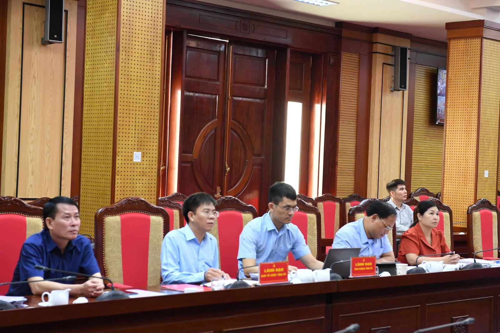 Quang cảnh hội nghị tại điểm cầu Tỉnh ủy