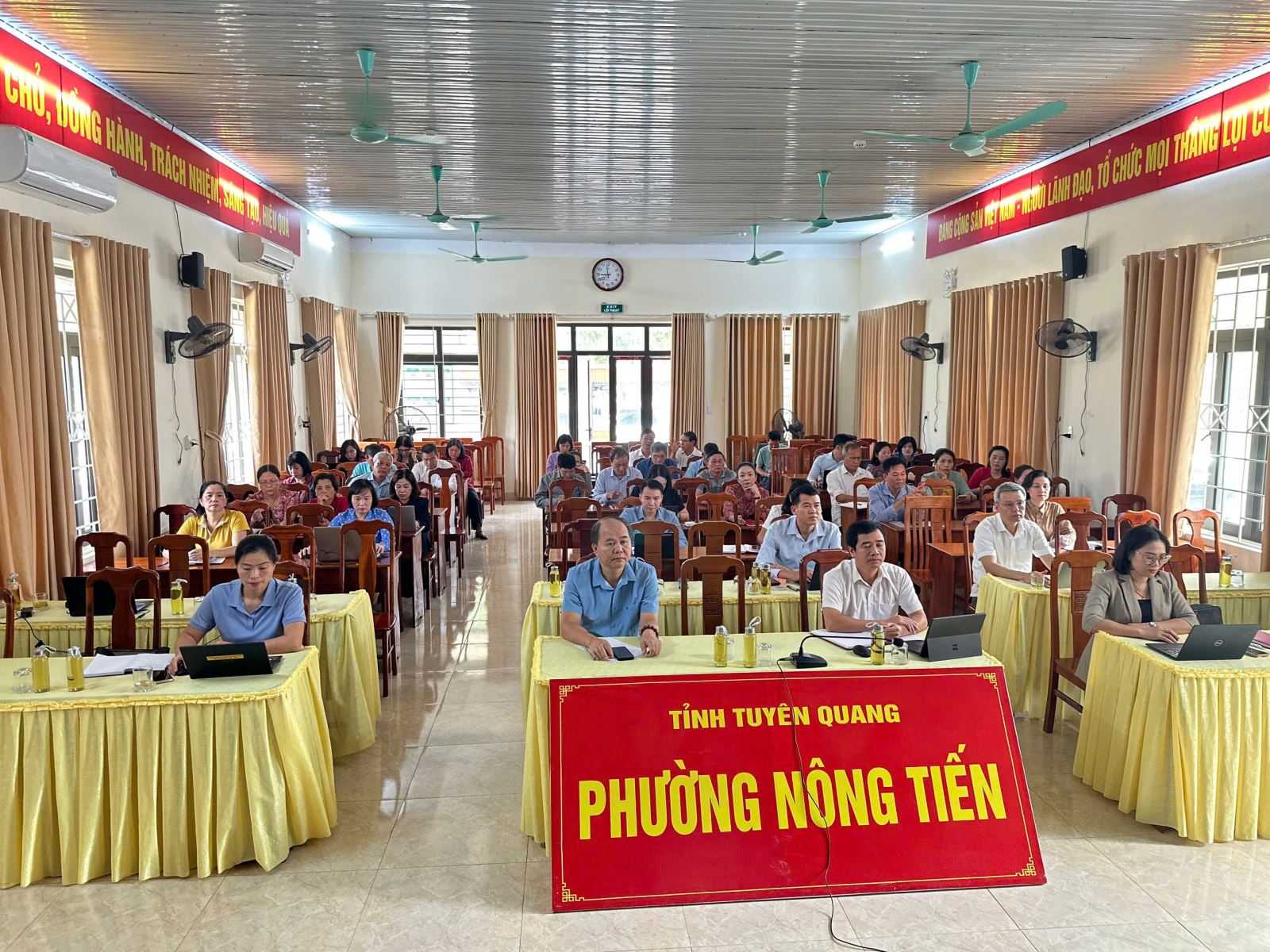 Các đại biểu điểm cầu Đảng bộ phường Nông Tiến