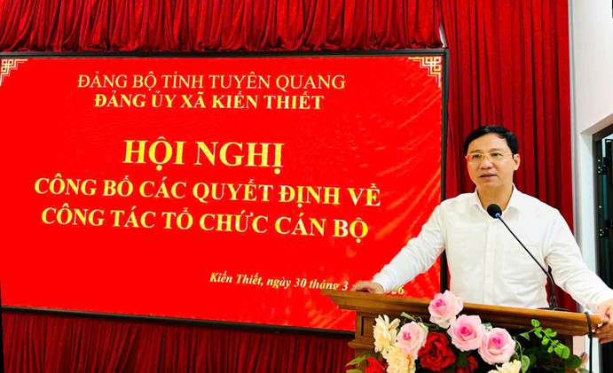 Sáng ngày 30/03/2026, thừa lệnh Ban Thường vụ Tỉnh ủy, Ban Tổ chức Tỉnh ủy tổ chức công bố các quyết định về công tác cán bộ tại Đảng bộ xã Kiến Thiết.